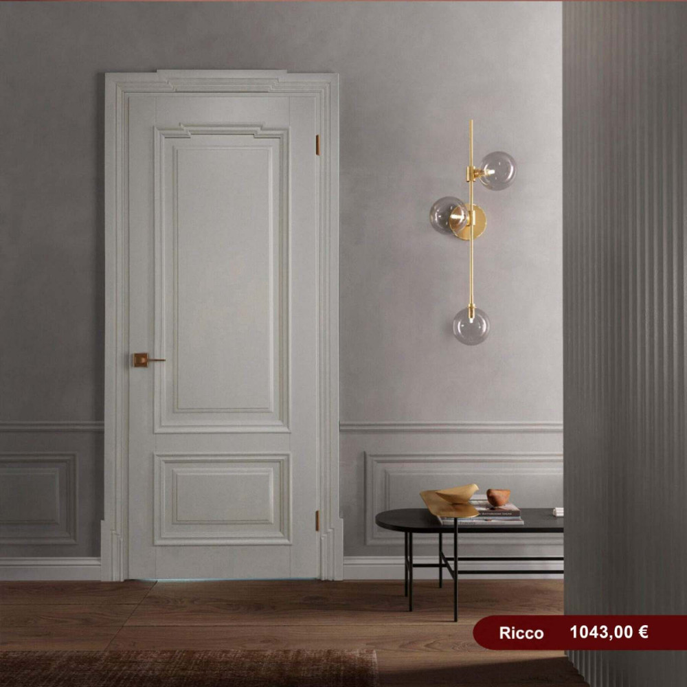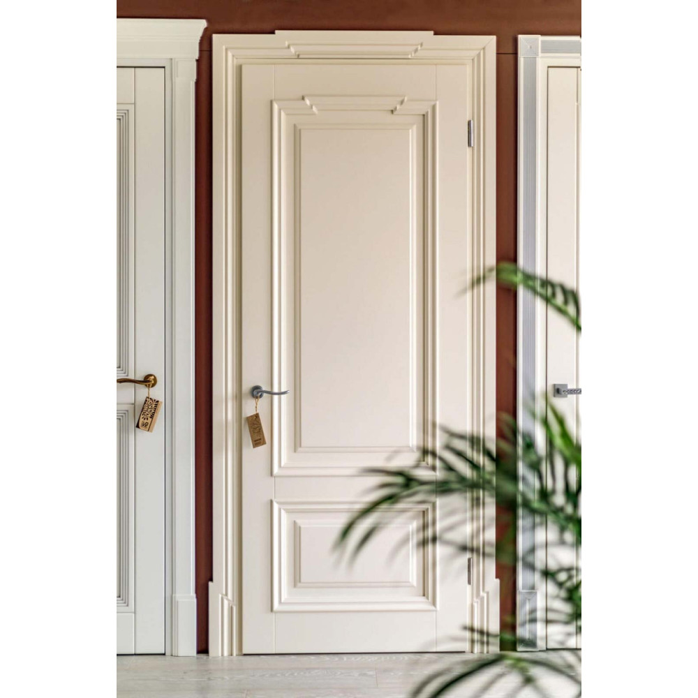 Композитна дверна коробка із масиву деревини. Композитні деталі обв’язування полотна із масиву деревини. Всі деталі дверей у розмірі із забарвленими торцями. Заводське врізання фурнітури перед обробкою виробів. Роздільне фарбування всіх деталей полотна, що ізолює від проникнення вологи. Складання полотна на механічному надміцному з’єднувачі без використання клею, що гарантує стабільність геометрії полотна на весь період експлуатації.