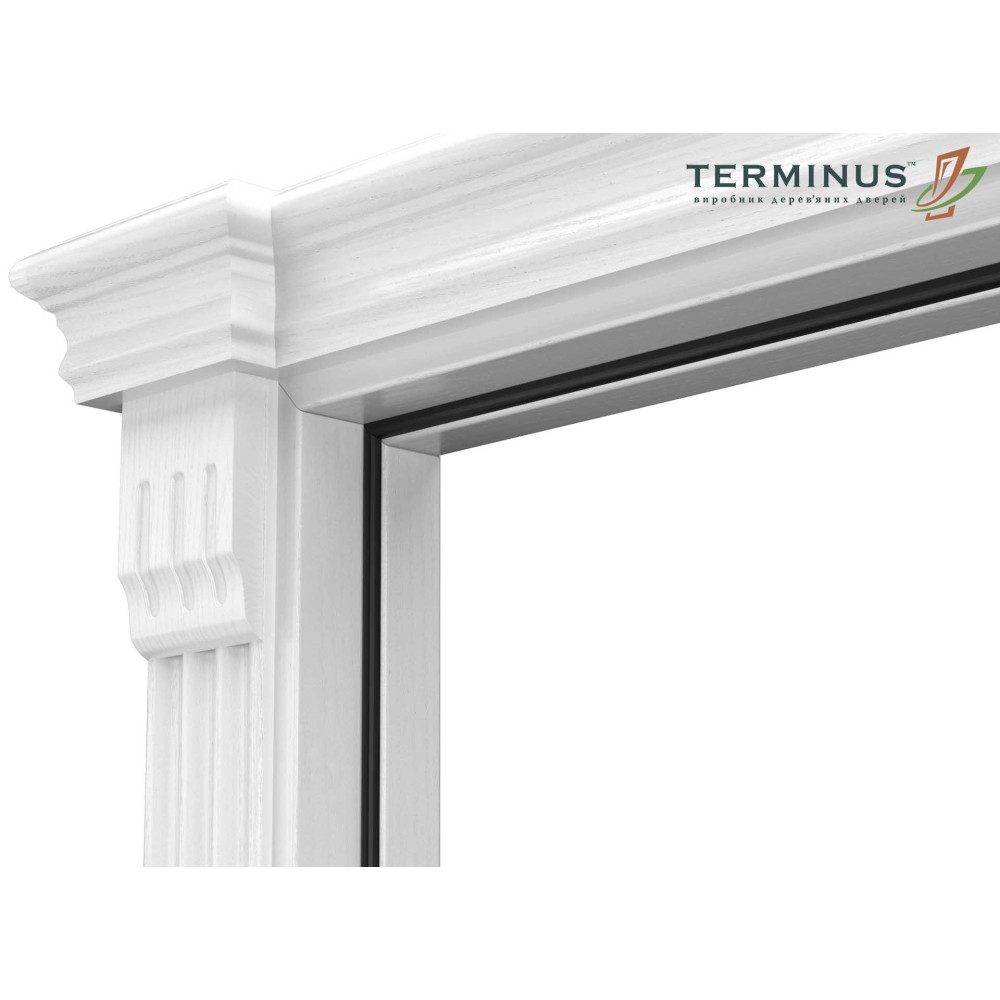 Лиштва: телескопічна, пласка шириною 74мм., канелюр шириною 84мм., або хвиля шириною 80мм., виготовляється із МДФ високої щільності, та облицьована високоякісним натуральним шпоном ясеня, з фінішним покриттям морилкою, та двухкомпонентним поліуретановим лаком. Телескопічна лиштва дозволяє зробити безцвяхове з'єднання до коробу.