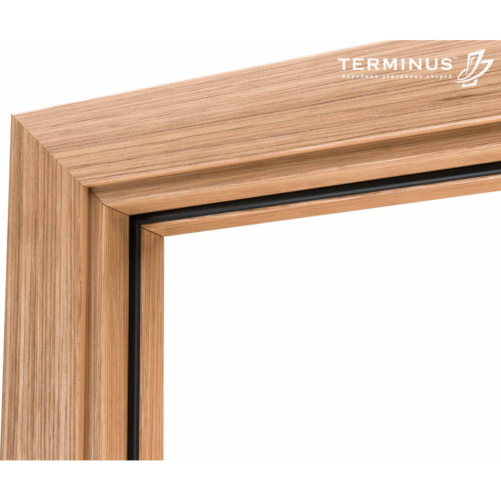 Лиштва: пласка телескопічна, або URBAN телескопічна, шириною 74мм., виготовляється із МДФ високої щільності, та облицьована високоякісним натуральним шпоном дуба, з фінішним покриттям морилкою, та двухкомпонентним поліуретановим лаком. Телескопічна лиштва дозволяє зробити безцвяхове з'єднання до коробу.