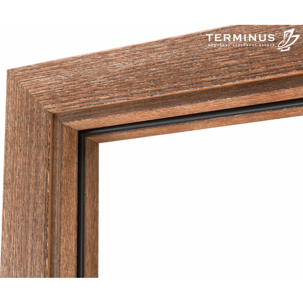 Лиштва: пласка телескопічна, або URBAN телескопічна, шириною 74мм., виготовляється із МДФ високої щільності, та облицьована високоякісним натуральним шпоном дуба, з фінішним покриттям морилкою, та двухкомпонентним поліуретановим лаком. Телескопічна лиштва дозволяє зробити безцвяхове з'єднання до коробу.